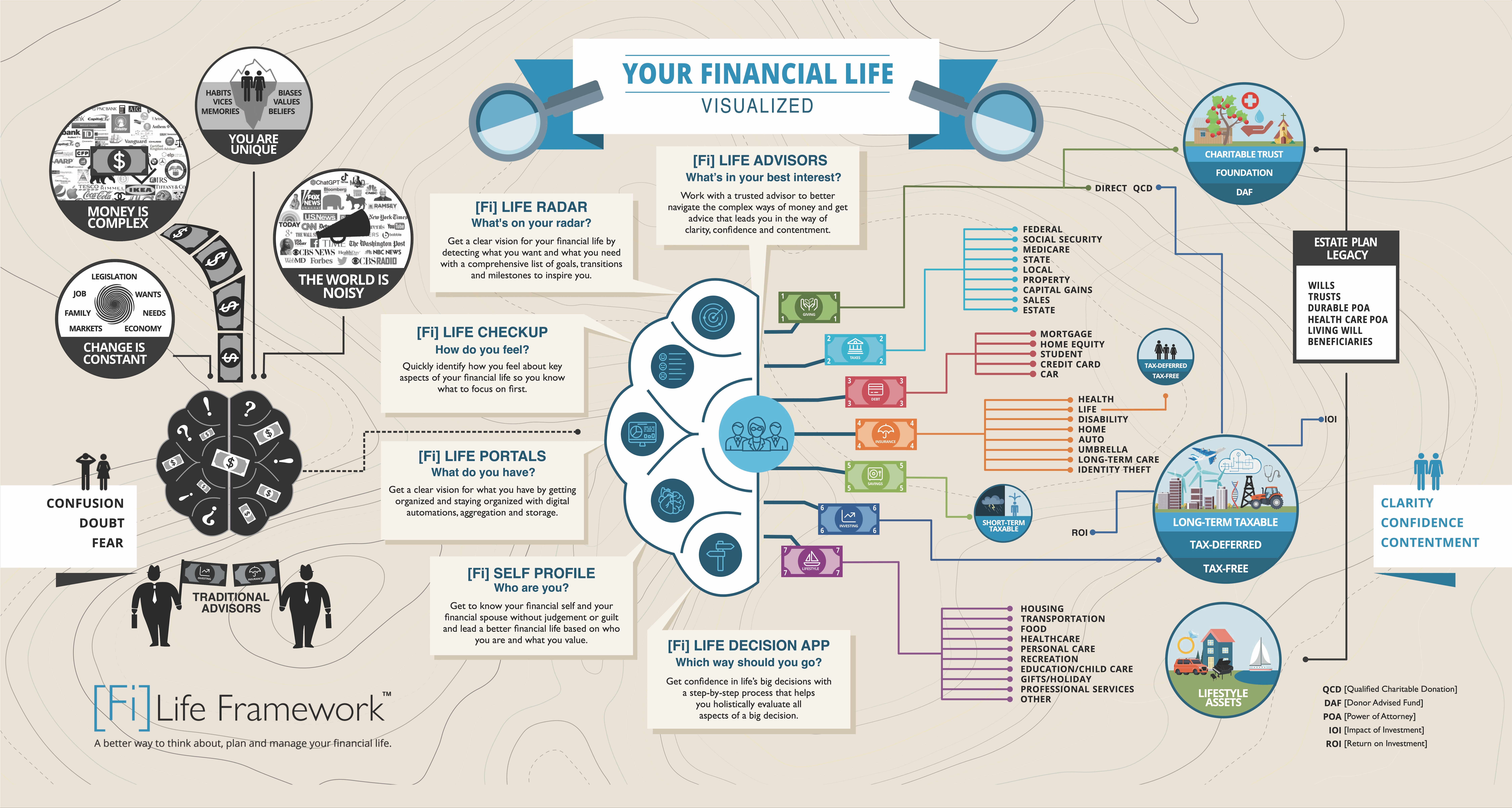 Whether you have a little money or a lot of money and regardless of your stage in life, our [Fi] Life Framework TM is designed to equip you where you are...even if you DIY or already have advisors.